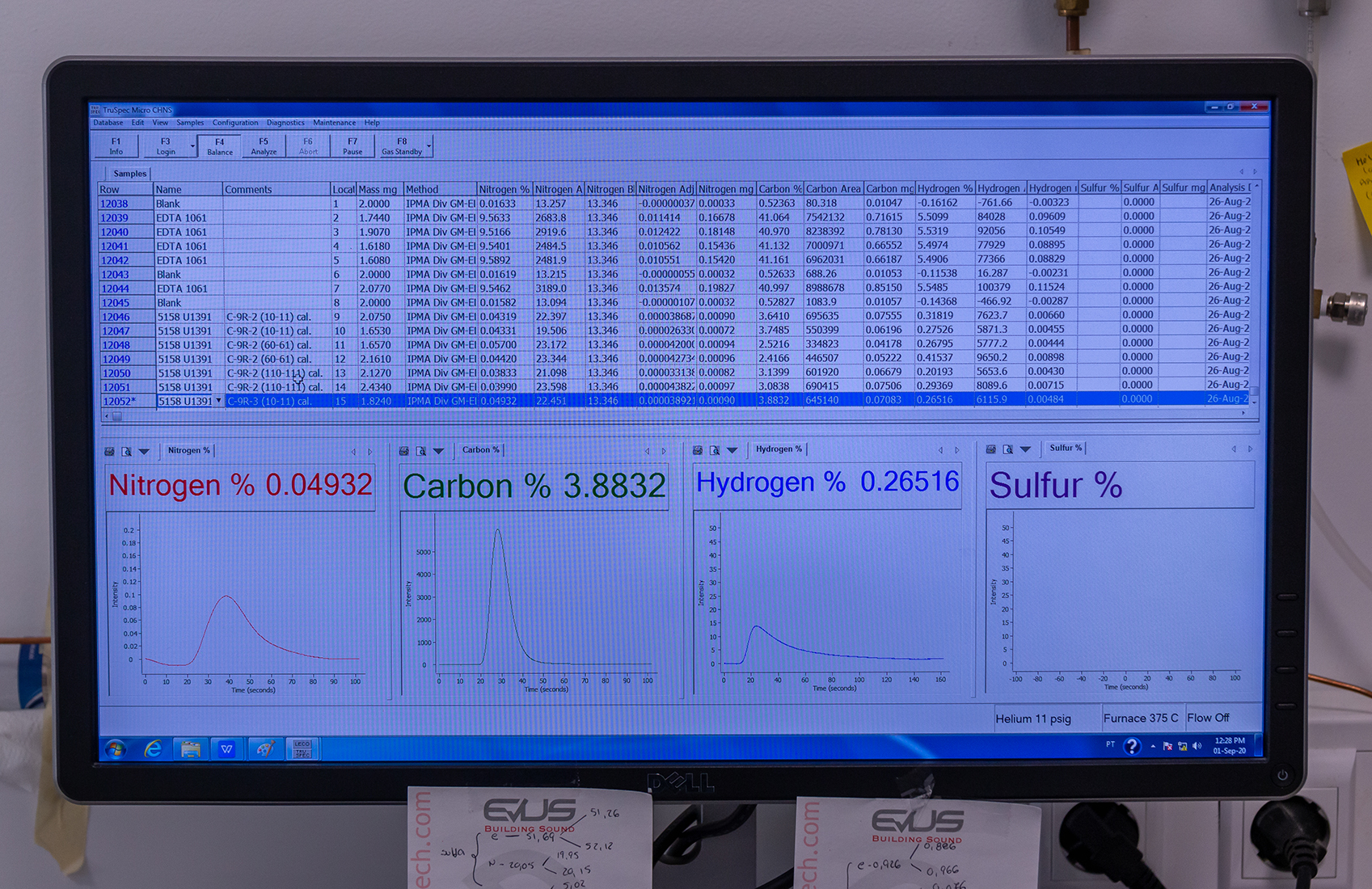 This Laboratory contains a Fritsch Pulverisette 7 micro mil for sediment grinding and a LECO TruSpec Micro CHNS that simultaneously measures the weight % of carbon, hydrogen, nitrogen and sulfur present in sediments.