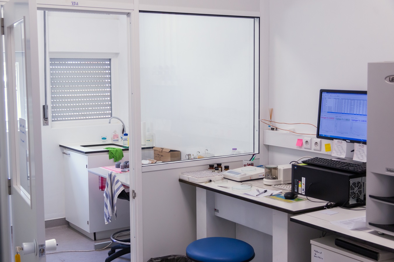 This Laboratory contains a Fritsch Pulverisette 7 micro mil for sediment grinding and a LECO TruSpec Micro CHNS that simultaneously measures the weight % of carbon, hydrogen, nitrogen and sulfur present in sediments. This instrument uses micro samples and is controlled via a computer with specific software.