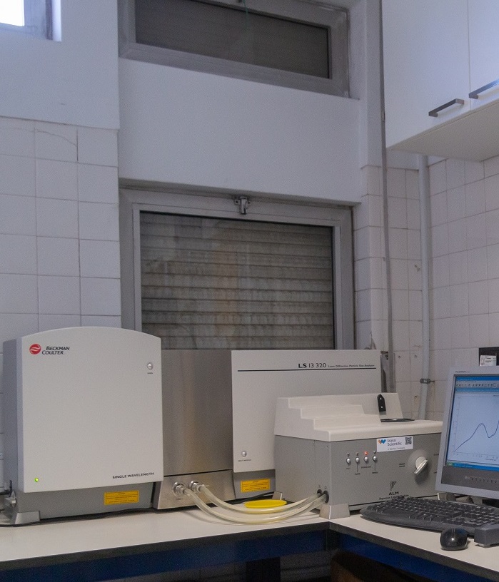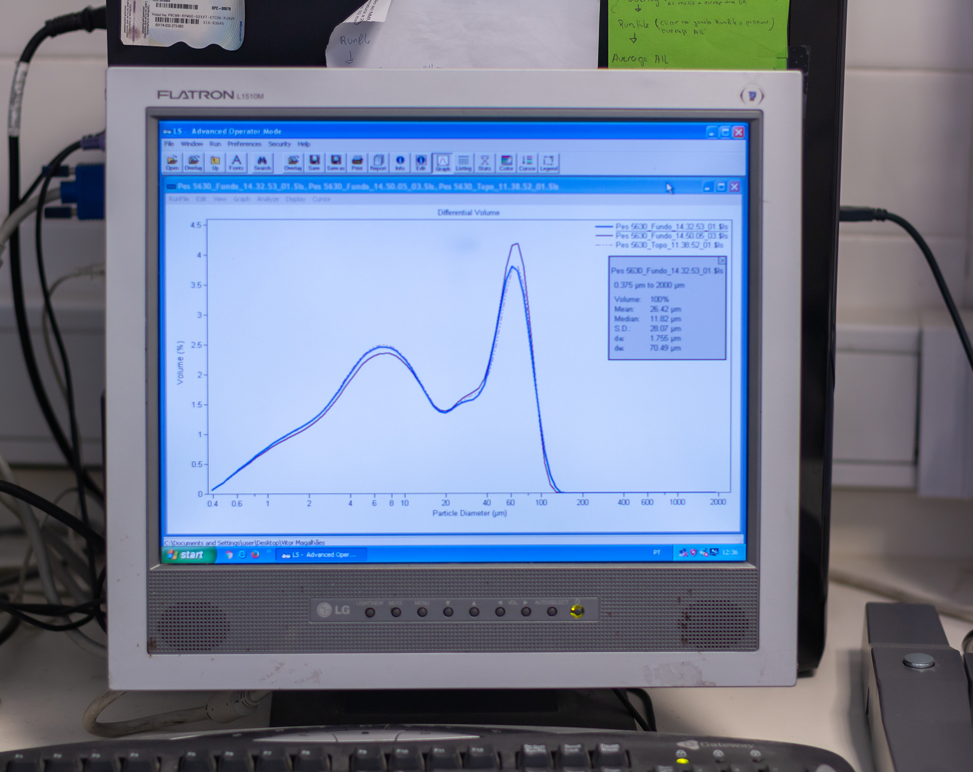 On the sedimentology side, it operates a Beckman Coulter LS I3 320 that provides number, volume, mass and surface area size distributions of particles contained in sediments in one measurement for micro and regular size samples (Coulter ALM waterful liquid module). Sizing range of 0.4 µm – 2 mm and rapid analysis of volume % size distribution, a basic characteristic of sediments routinely determined for every sample.